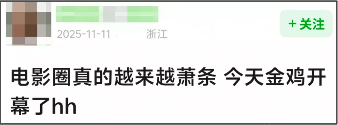 • 金鸡奖开幕星光黯淡,周冬雨开场陈飞宇主持,网友感慨电影圈萧条